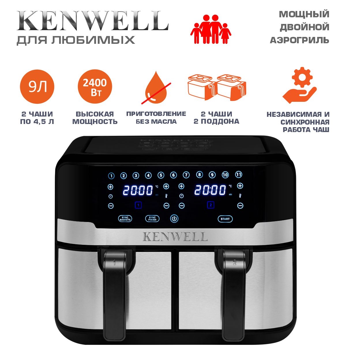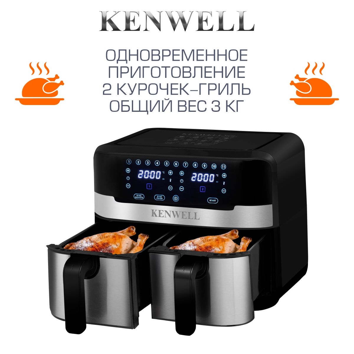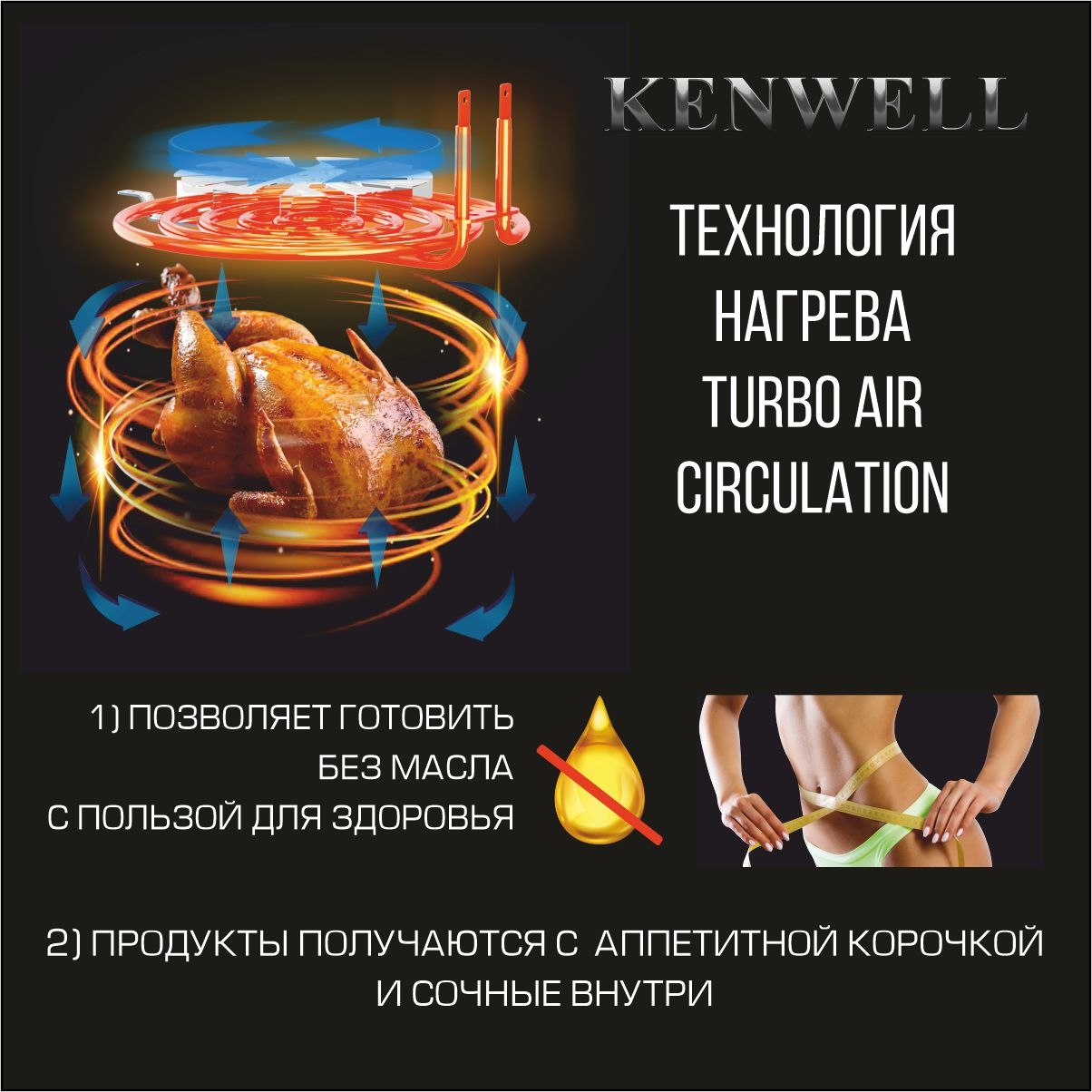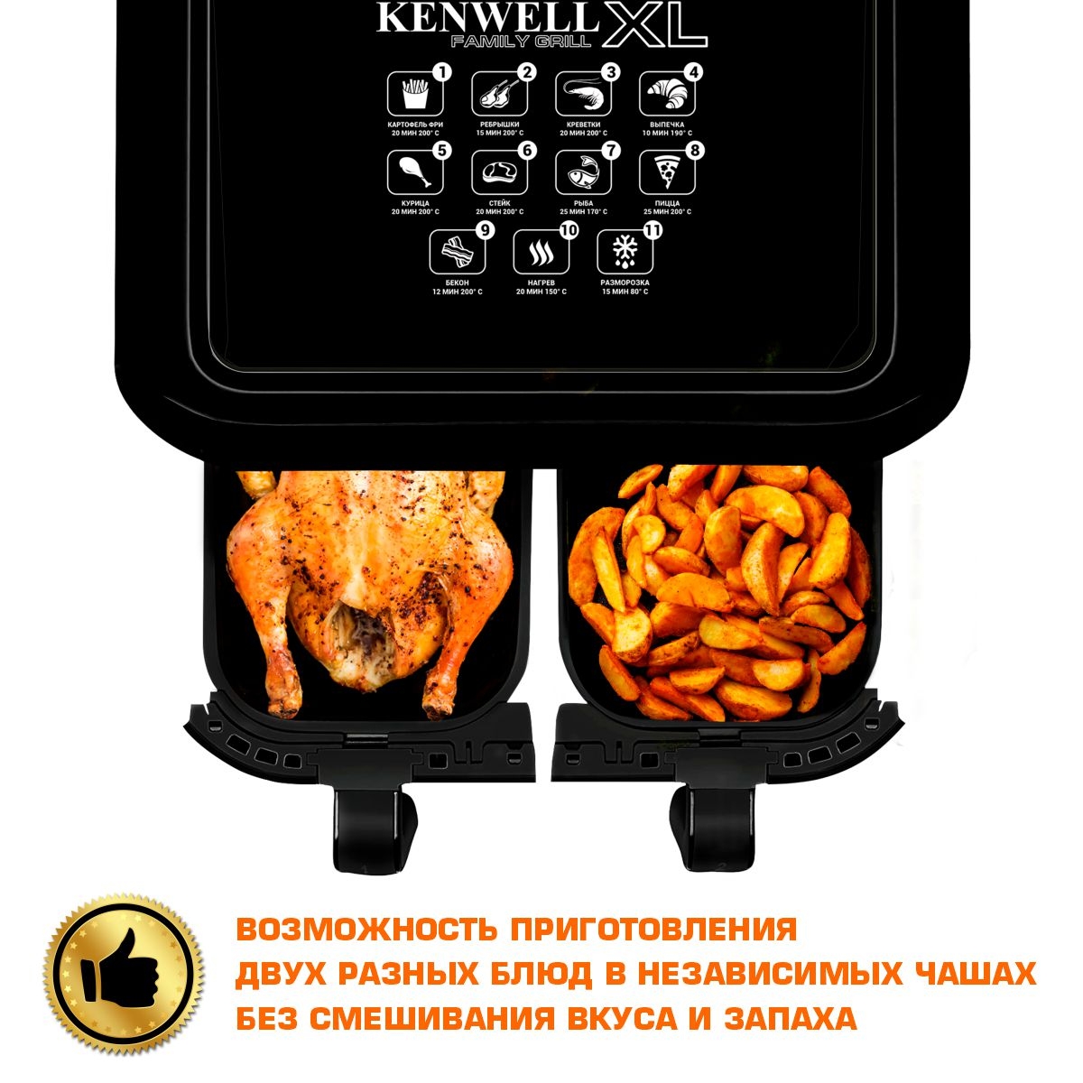 Мультифункциональный двойной турбо‑аэрогриль Kenwell