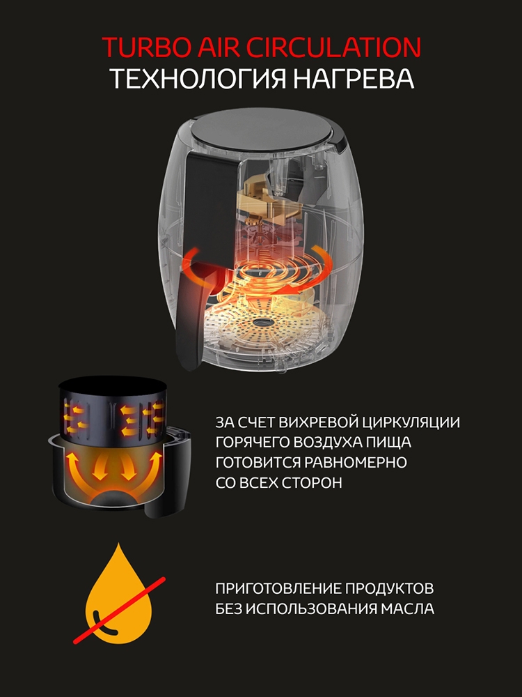 Инновационная технология TurboAir Circulation обеспечивает идеальное приготовление блюд без переворачивания.
