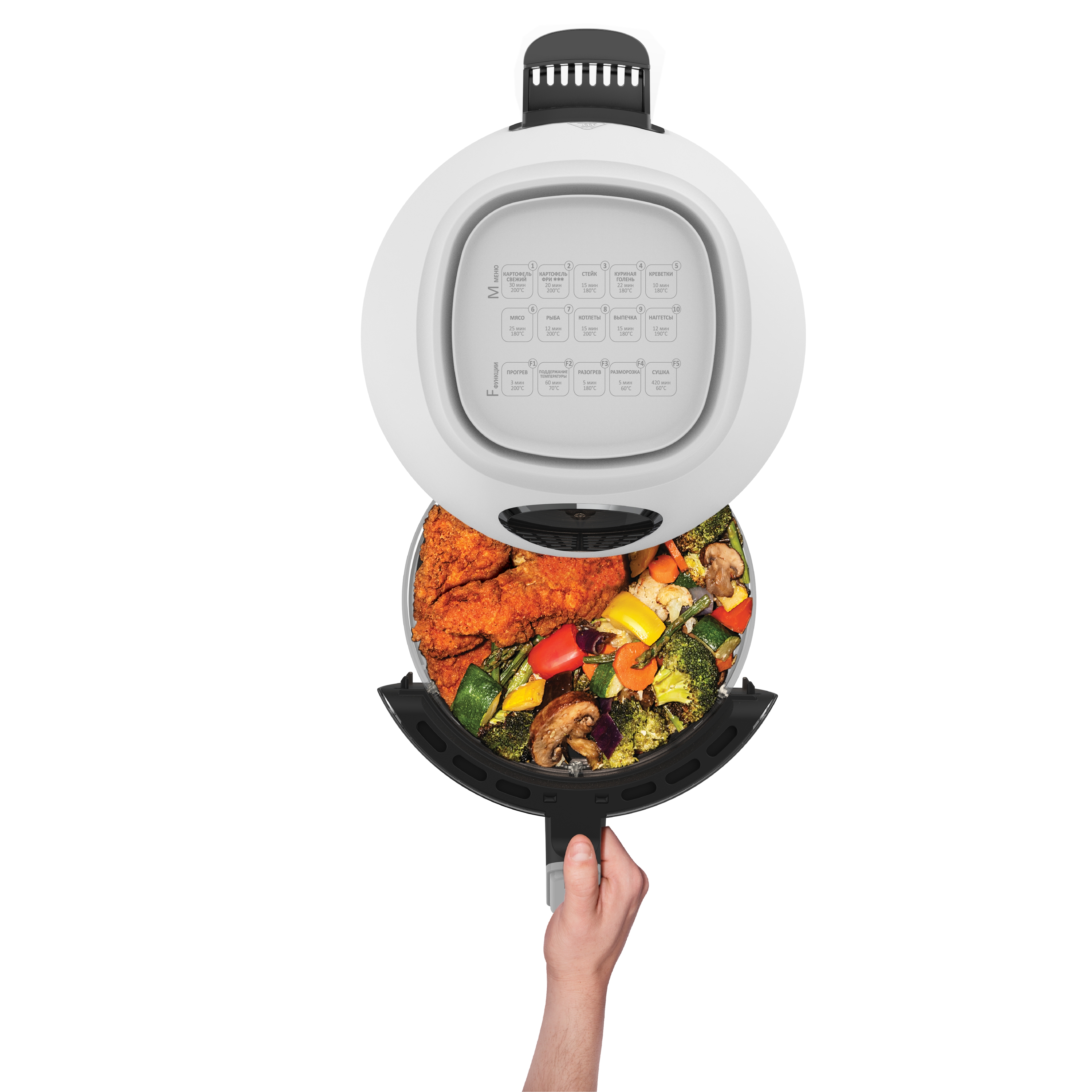 внутренняя подсветка чаши — контроль приготовления без открытия крышки;